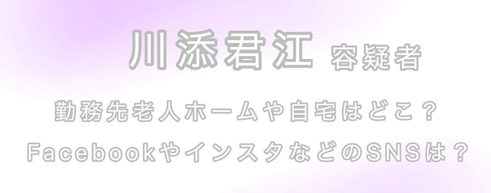 - 顔画像:現時点で川添君江容疑者の顔画像は公開されていません。